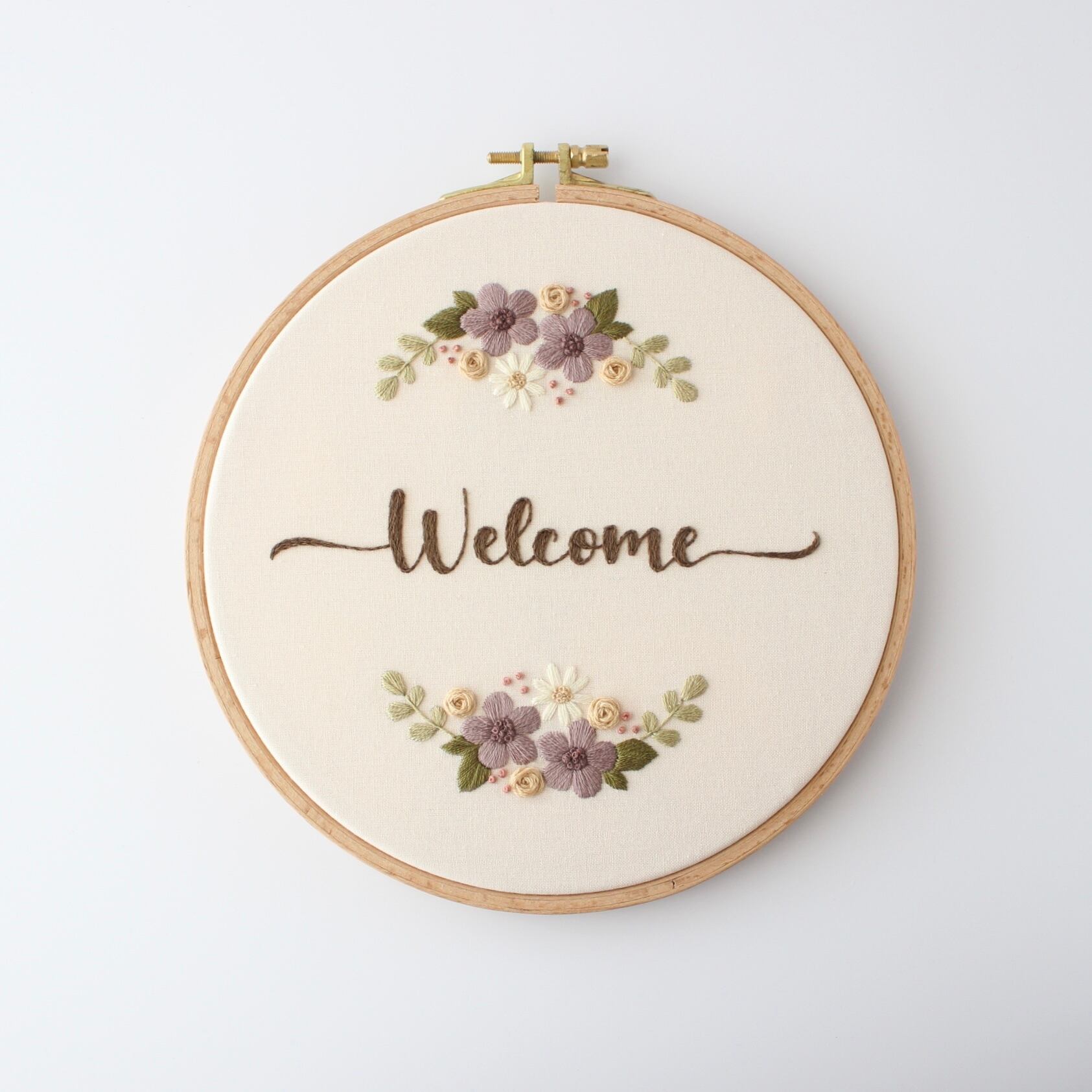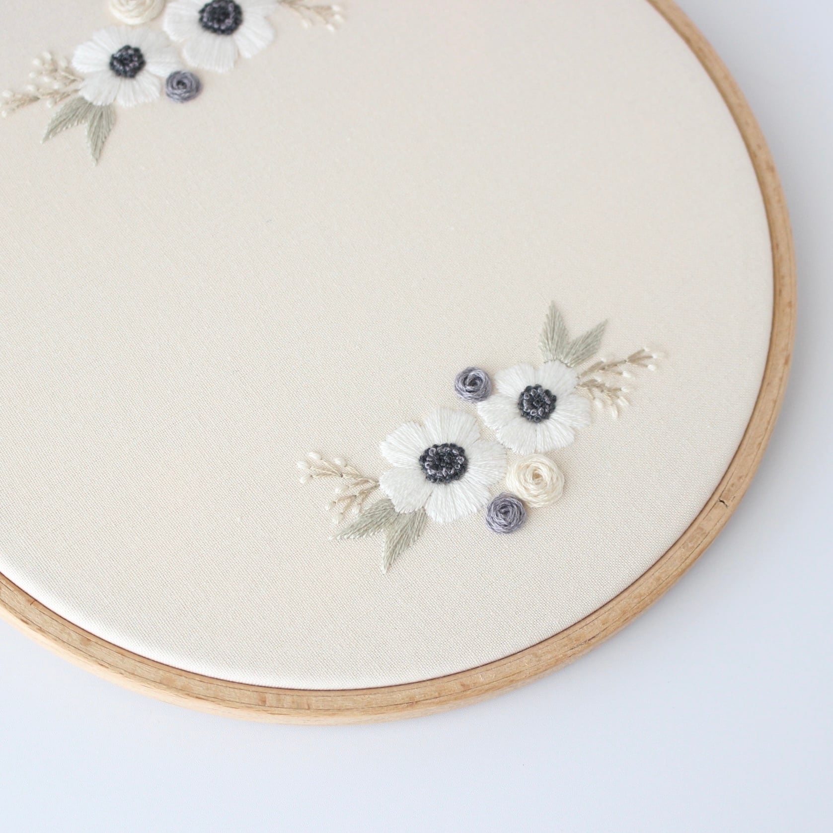 冬らしい花々がかわいい刺繍アートです。