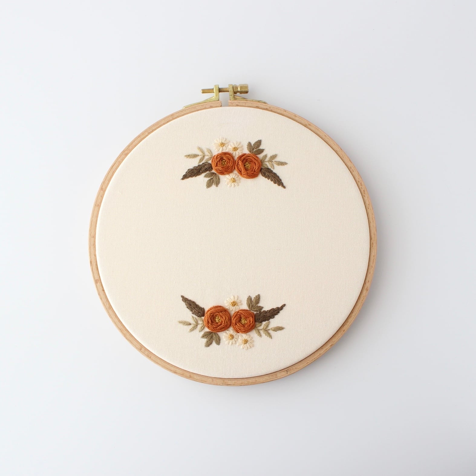 秋らしい落ち着いた花々で彩る刺繍アートです。